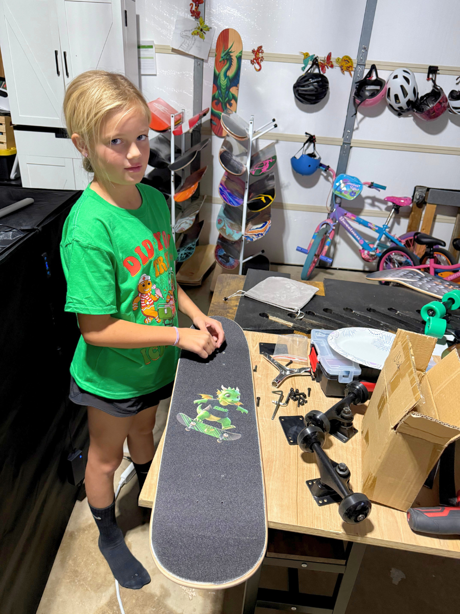 At Sk8decks, quality and creativity aren't just buzzwords—they're our family's daily project. From concept to creation, our kids are deeply involved in every step, learning hands-on skills like sanding, staining, and finishing wood. This isn't just about selling skateboards; it's about building dreams, fostering creativity, and crafting premium decks right here in our family workshop that we'd trust for our own children. When you choose Sk8decks, you're not just buying a board; you're supporting a small, local business and empowering the next generation of makers and riders.