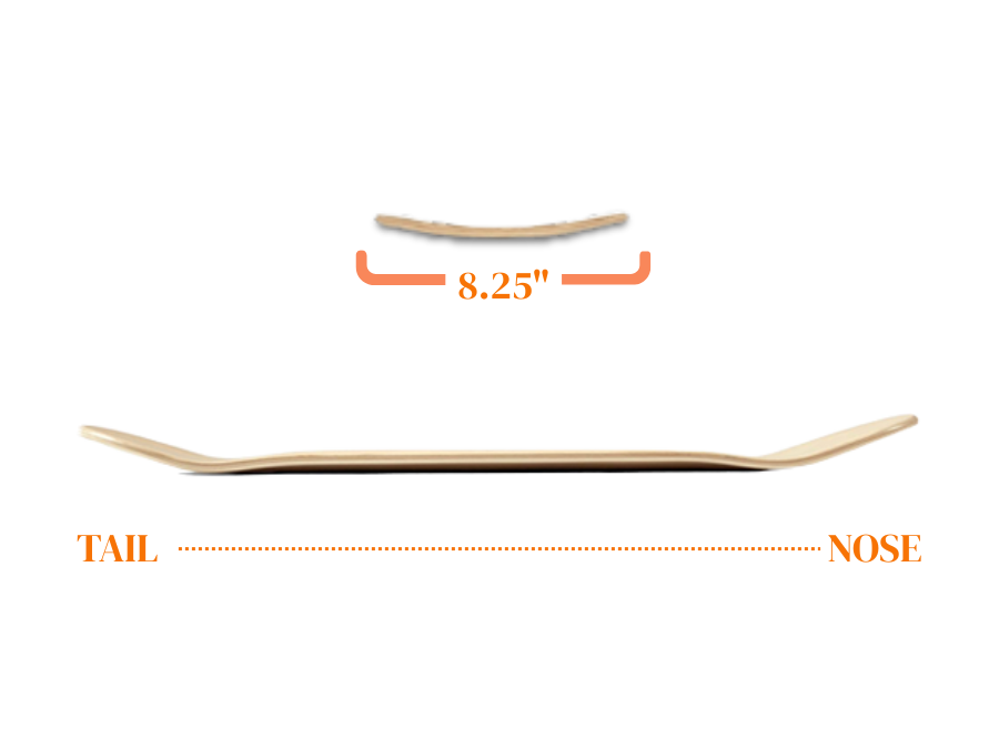Pro-Shape Geometry: This deck, the 8.25 inch Popsicle Shaped Board, is specifically shaped for quick snaps and technical precision. It is the preferred size for experienced skaters looking for speed and control.